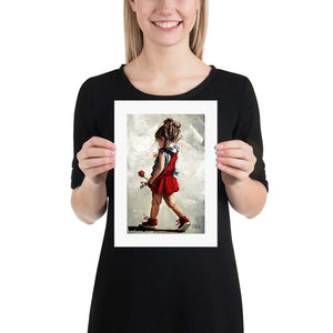 The image is centered on the face of the paper, with a minimum width of a 35mm white border on two opposite sides, the white border will vary based on the size of the original artwork.